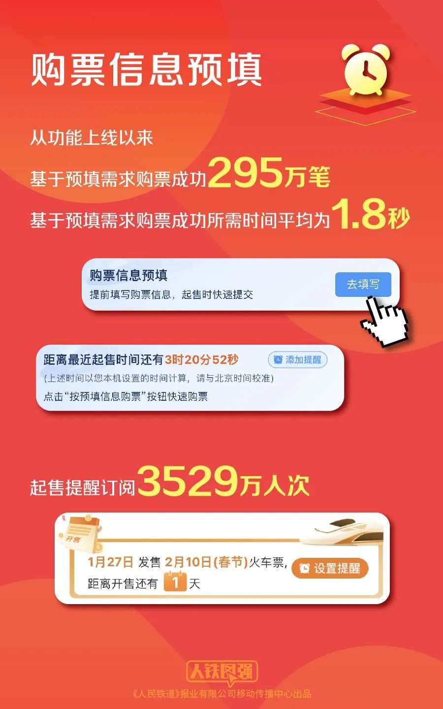 购票需求预填和火车票起售提醒订阅是方便旅客购票推出的新服务。旅客可根据车票起售时间,提前设置提醒,以便及时提交购票订单。