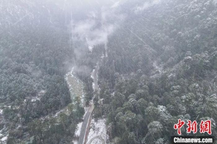 2023年12月18日,西藏林芝扎墨公路波密段积雪结冰。