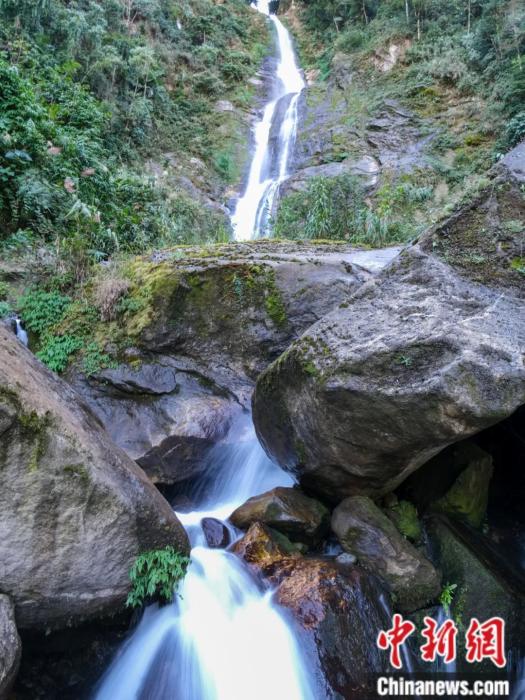 2023年12月21日,墨脱县亚让村洞萨漫步瀑布风光。