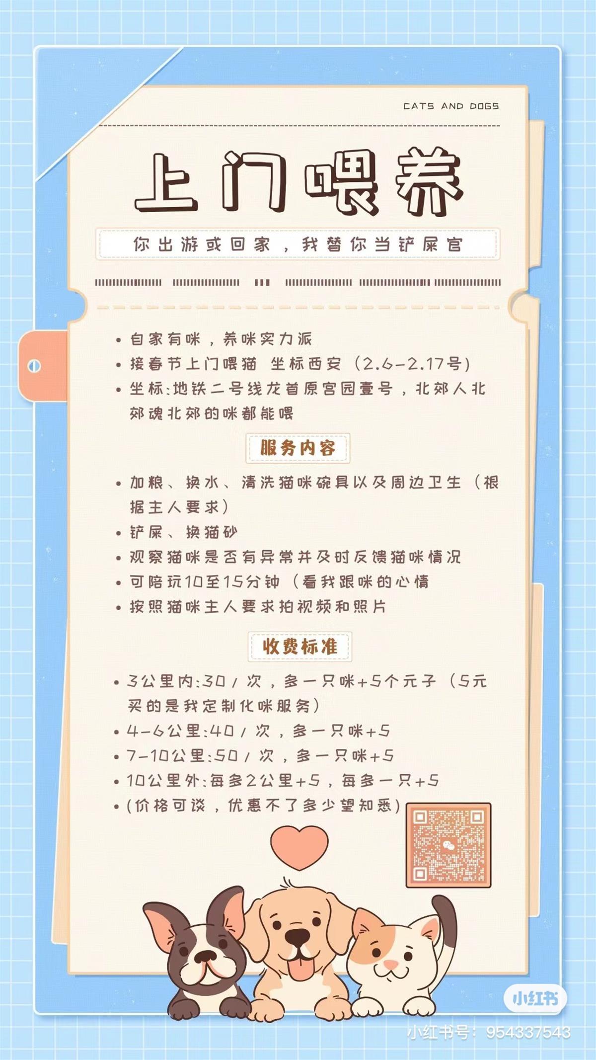 社交平台上有网友发布上门喂养的服务内容和收费标准