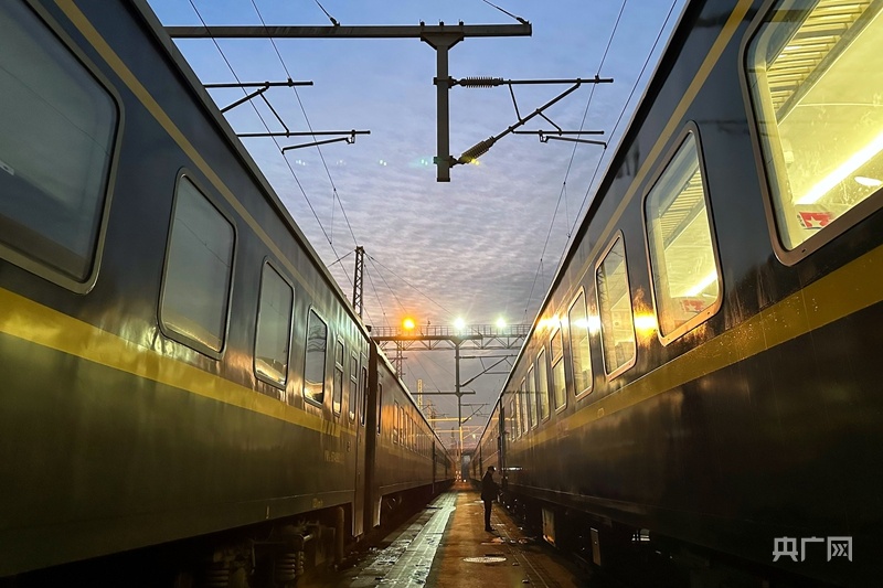乘务员在哈尔滨站进行作业,为返程做准备(央广网发李艺摄)