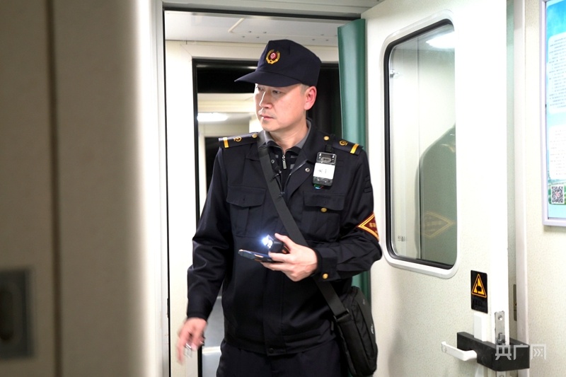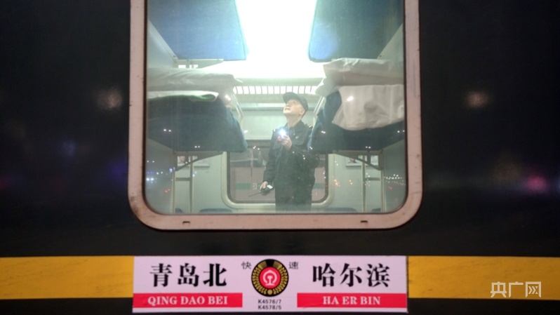 “大哥,你也去哈尔滨啊!”“好久不见,车上得空聊”……车厢内,胡克军与张勇波不断与客运人员热情打着招呼。“我俩跑车都10多年了,跟兄弟单位的同事都混了个脸熟,在车上互相关照,时间长了,就跟家人似的。”胡克军笑着说。在车上,两人实行“倒班制”。当班人员每隔3小时就要对17节车厢进行一次巡检。依据双人作业站点,一般每隔7小时左右换一次班。