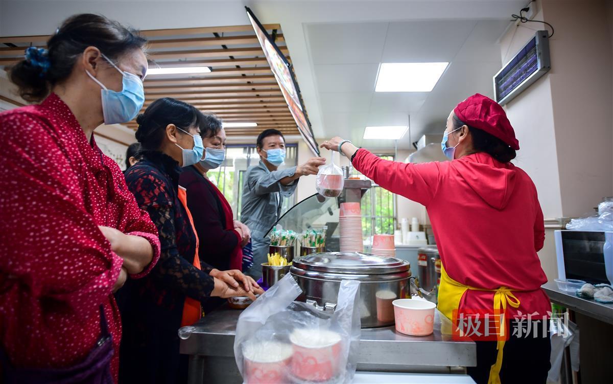 “10块钱,两荤两素,还送免费汤,一顿能吃饱,菜单每天不重样。”她说,出行不便的老人,在社区微信群里可以直接下单,有专人负责送餐上门,既方便又营养。
