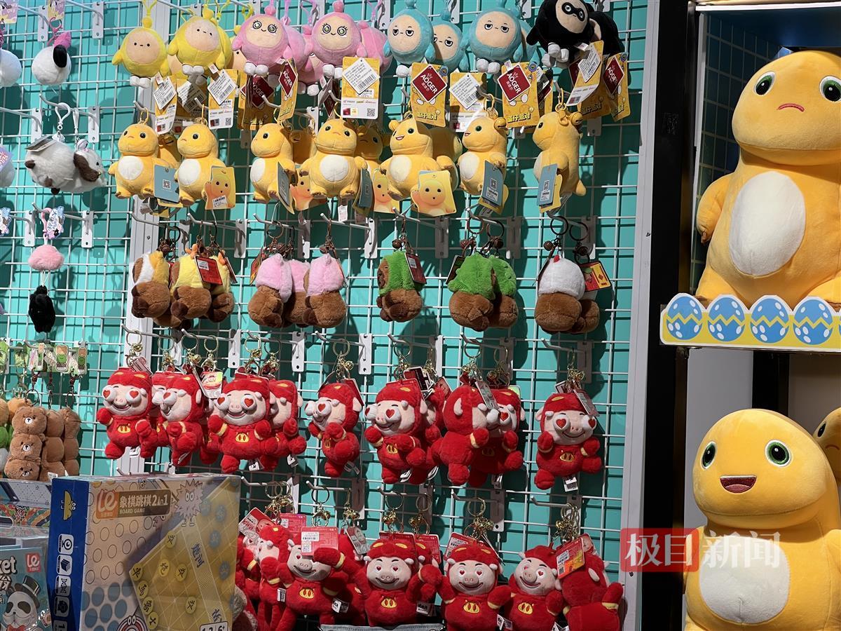动画片《奶龙》里的奶龙,成为今年最火爆的龙形象之一。在楚河汉街、光谷广场等多家杂货店、文创店,记者看到,各式各样带着财神帽、龙头帽的奶龙玩偶、钥匙扣、新年日历、新年红包,成为店内的畅销品。