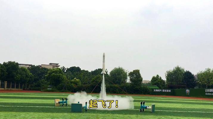 2023年6月,严弘森第一次发射自制火箭