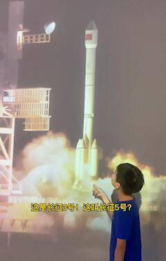 严爸爸告诉记者,2022年7月,他们在拉萨参观“藏域星球”天文体验馆时,在看完展厅内循环播放的演示动画后,小家伙很生气。“我儿子发现这条科普视频有一些错误,展馆的工作人员将长征五号错当成了长征三号,其次是火箭的分离顺序也出现了错误,甚至连空间站对接部分也有错误。”严爸爸将这条视频发布到社交平台后,迅速引来无数网友围观。