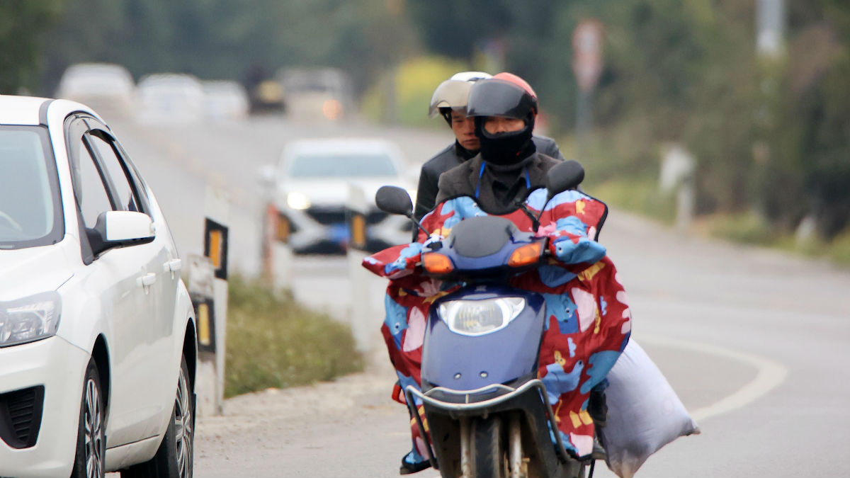 杨萍和丈夫的骑车返乡一直持续到2015年,这既是因为回南宁的车票不再一票难求,也是因为需要将两个孩子从老家带到深圳读书,骑摩托车不安全。