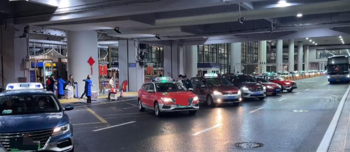 浦东国际机场正在等客的出租车(图片来源:看看新闻)