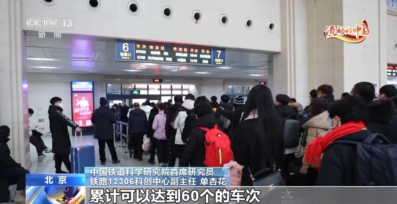 中国铁道科学研究院首席研究员 铁路12306科创中心副主任 单杏花:原先可以选择两个相邻日期,每个日期5个车次,最多是10个需求,我们现在给它扩到了可以选择任意的三个日期,累计可以达到60个车次、日期的这种组合。