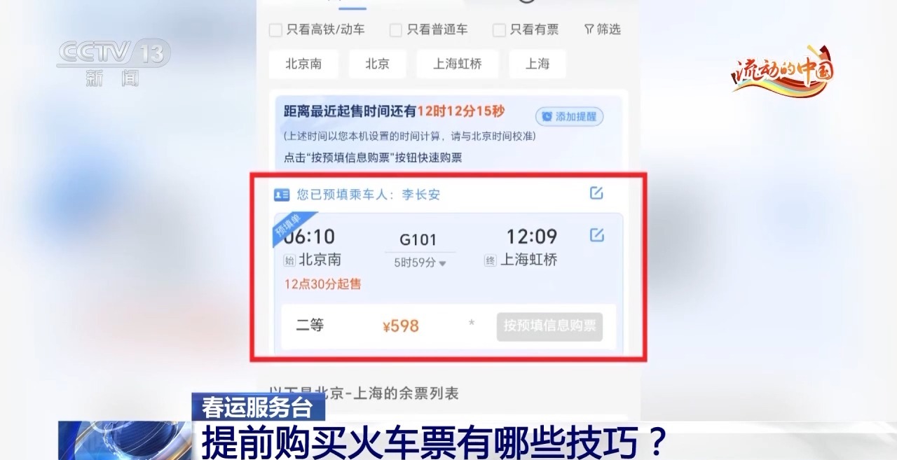 其次,信息预填。从预售期当天零点,到该车票始发站起售时间前,旅客都可以提前预填购票信息,以便在车票开售后第一时间提交,节省线上排队等待时间。