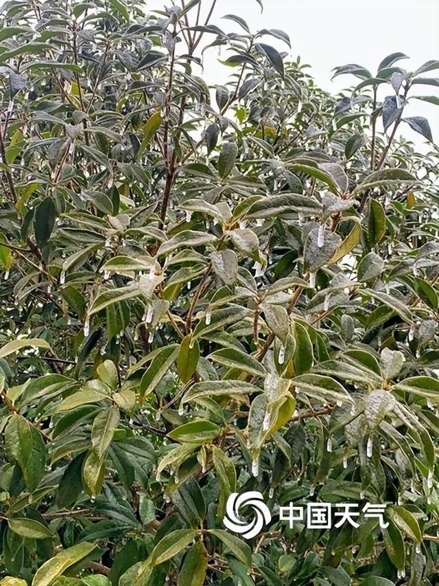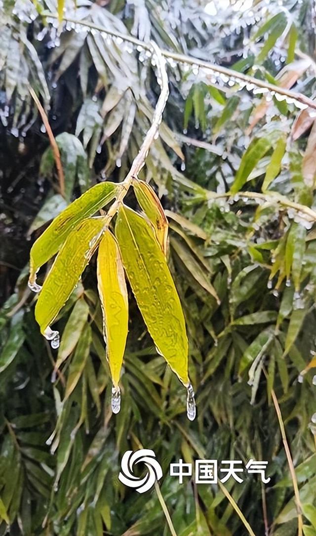 2月2日至3日,湖北、湖南、安徽等地迎来冻雨天气,植被、电线杆、道路等表面冻结了一层晶莹透亮的冰壳或冰柱,这种冰层在气象学上又被称为“雨凇”。图为安徽霍山城区冻雨景象,拍摄于2月2日。(图/高琳)