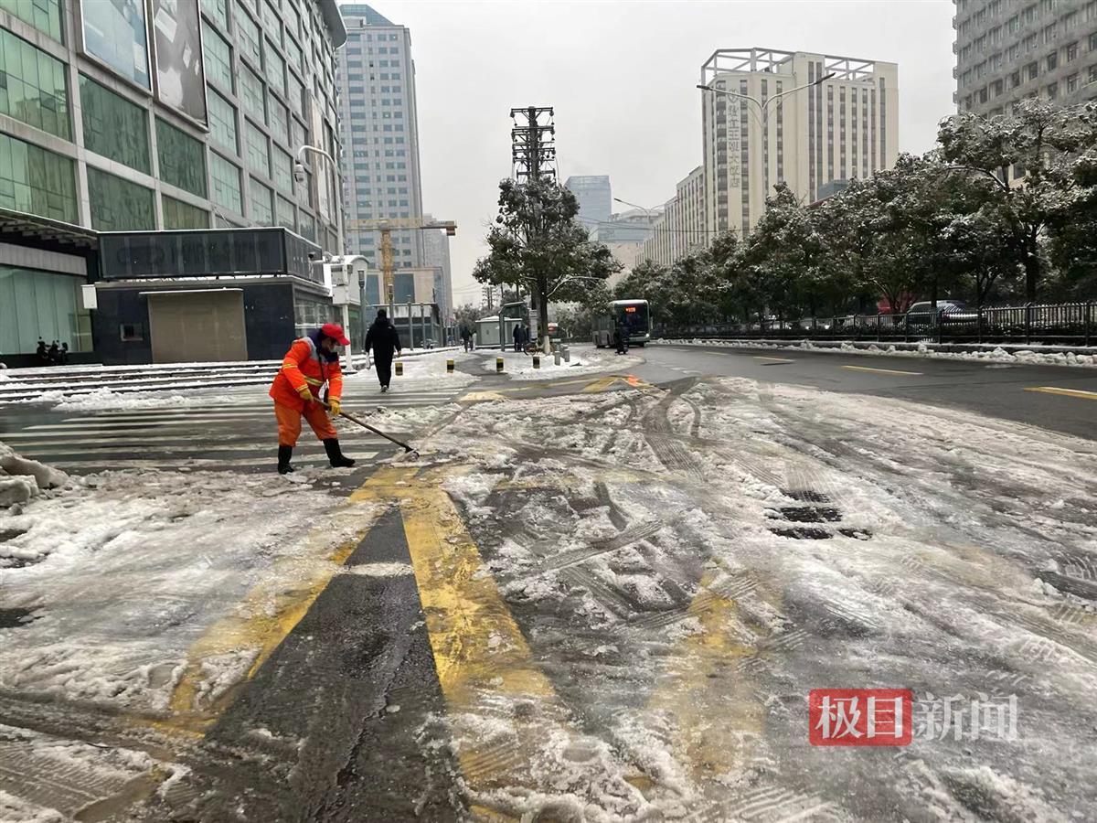 5日白天,武昌广埠屯,环卫工人除雪忙(极目新闻记者 陈希摄)