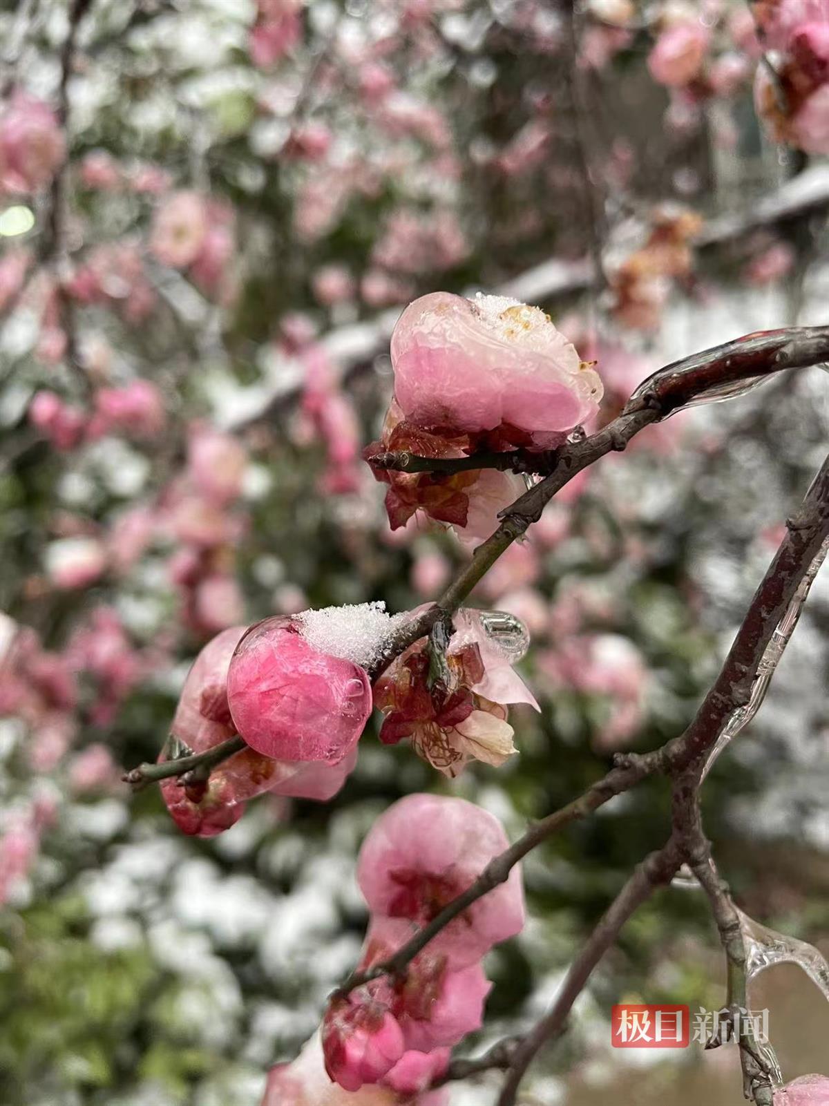 傲雪的梅花被无情的冻雨冻住了(极目新闻记者 陈希摄)
