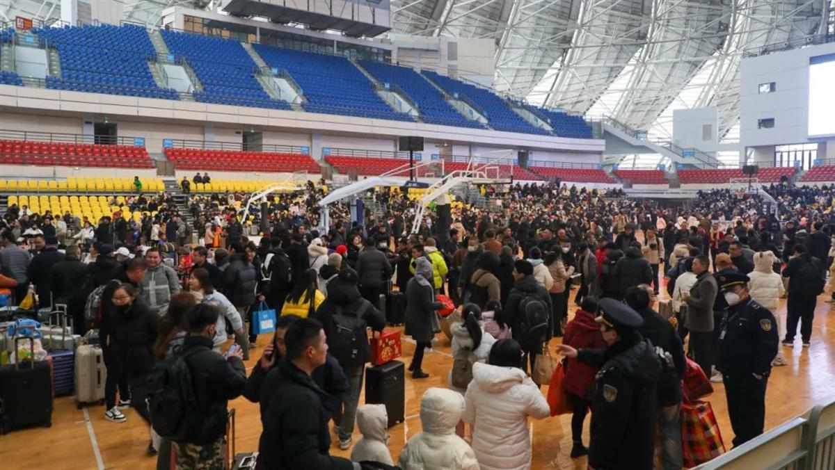 2月4日,湖南省岳阳市奥体中心,面对滞留旅客“把我们叫到这里来干什么?”的质问,工作人员回应:“第一避风,第二避雨,第三有热水,第四有饭吃。”