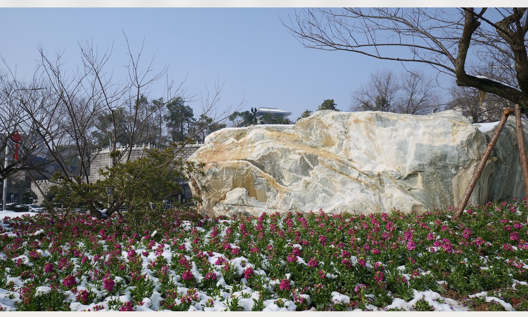 放鹰台段原先有多个小花池,经过整合提升,如今变成了景观连续的大花池。植物景观也进行了优化,原先的香樟被保留,新添了市树水杉和市花梅花,以凸显武汉的城市特色。