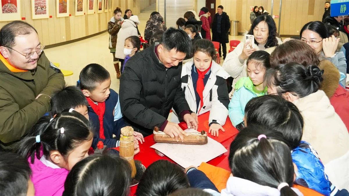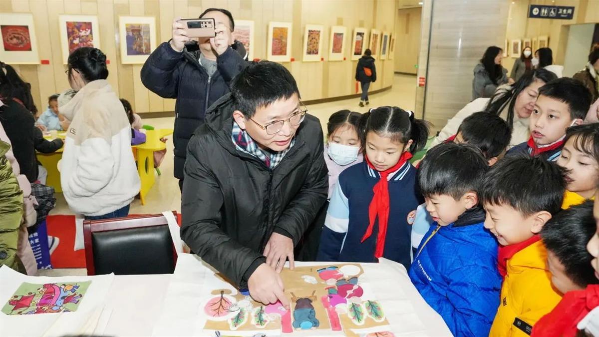 据介绍,在2月6日展览开幕式现场,黄州农民画传承人李元生、舒爱姣准备了小幅农民画,和现场小观众们一同填色,共同完成创作;国家级非物质文化遗产项目老河口木版年画传承人陈洪斌则带领小观众们体验木版年画的印制过程。“腊月廿三祭灶,要贴灶王爷的图,老河口木版年画里除了灶王爷,还有灶王奶奶。”陈洪斌介绍,传统老河口木版年画为我们留下许多生活图景。