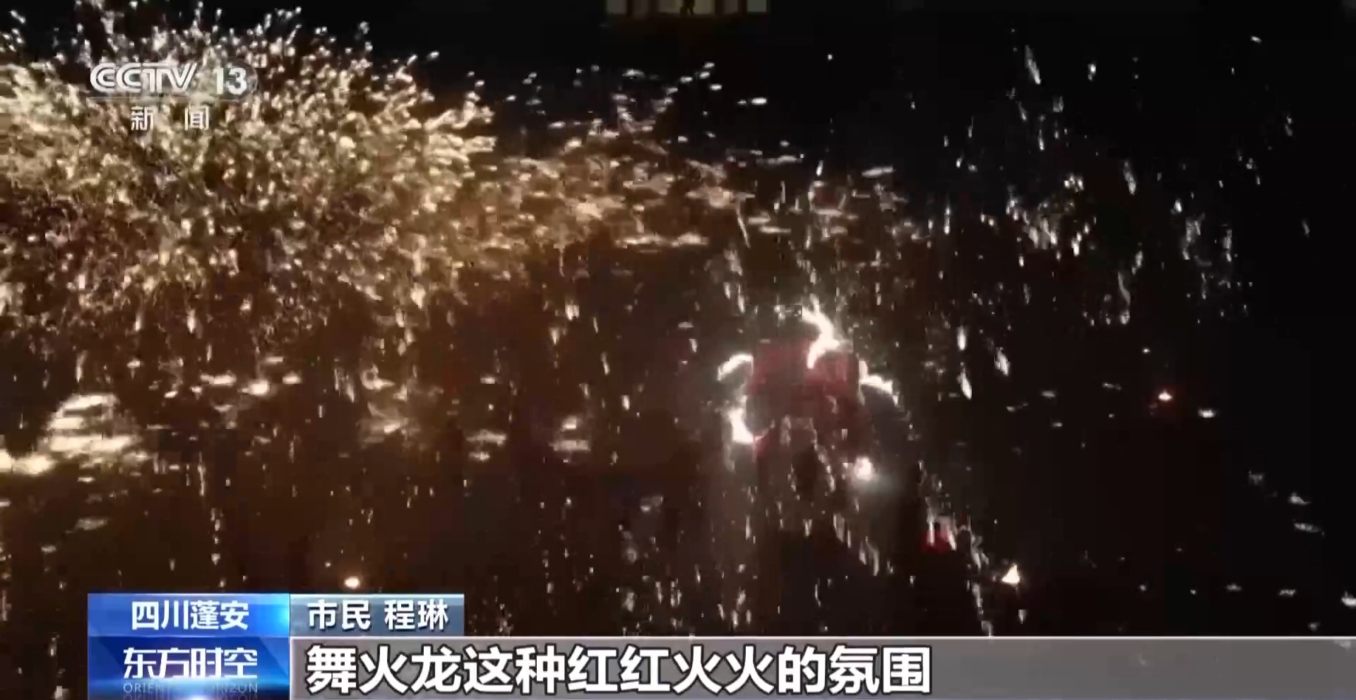 在四川蓬安县,一场精彩的国家级非物质文化遗产“火龙钢花”表演火热上演。伴随着喜庆的乐曲,温度高达1500℃的铁水被拍打至高空,瞬间绽放成朵朵“钢花”漫天飞舞,舞龙者在飞舞的火花间舞动穿梭。