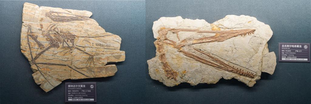 南京古生物博物馆展出的部分翼龙化石。新华社记者李博摄