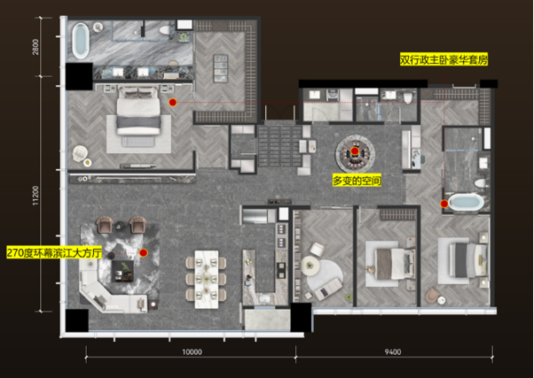 在城市塔尖青睐的武昌滨江,武汉101则大胆突破,只供应236㎡以上的总裁大平层。