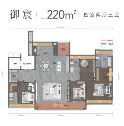 在老城高端改善客云集的武珞路,御湖境主打175㎡、220㎡的四房产品。