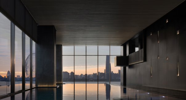 为了观景效果最大化,御湖境将两侧会所空间,全部打造成巨幕无框玻璃,因此形成了与水面视野齐平的行政酒廊,与水景亲切互动的私宴厅、书吧和茶室。