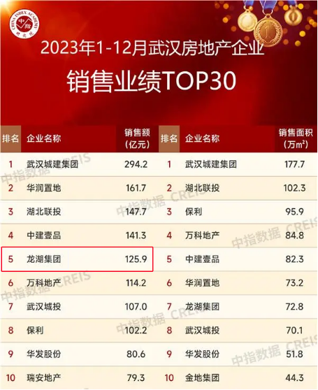 ▲中指院发布的2023武汉房企销售业绩TOP30