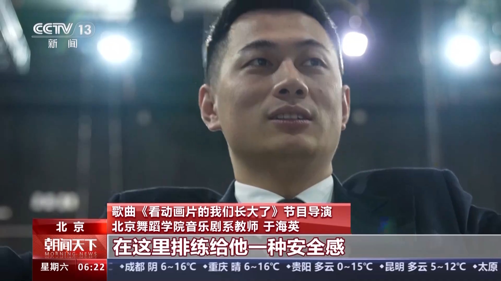 歌曲《看动画片的我们长大了》节目导演、北京舞蹈学院音乐剧系教师于海英:他们一开始连笑都不会,走路膝盖都是僵硬的,上来可能就是担心自己会做错,甚至说不敢看人。我觉得不管是成人还是孩子,其实在某一个他不太自信的部分,在这里排练给他一种安全感,然后慢慢打开自己一些。