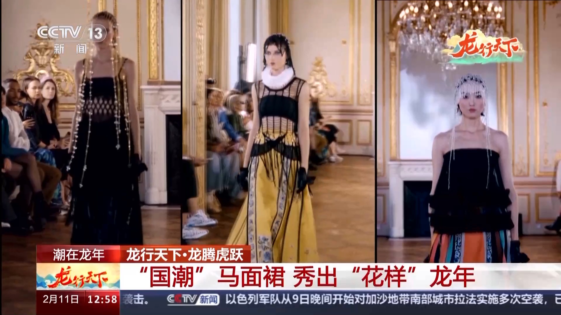 服装设计师 林栖:首先做了多种面料的结合,比如把我们传统的马面裙做了连衣裙的延展,但是又有很强的传统文化属性。越来越多的人选择在非常重要的场合穿着有自己文化属性的服饰出现,越来越多的人以穿上有中国元素的服饰而感到自豪,这是一个自信的表达。