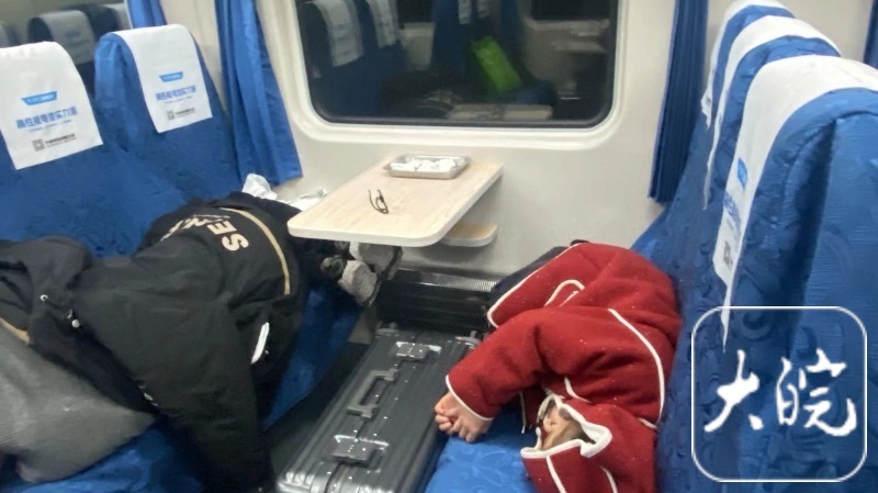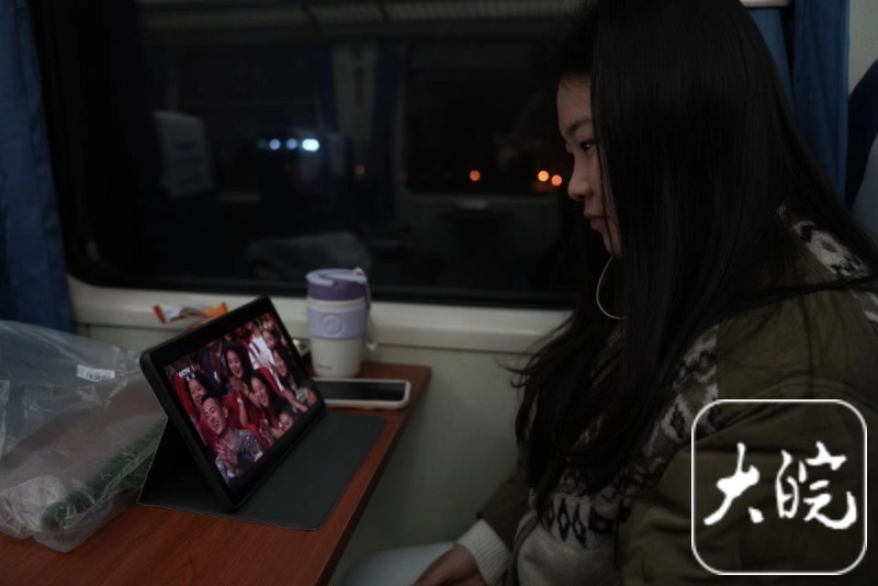 在餐车休息的王赛文正在和妈妈视频,告诉自己快要到站了。她是山东聊城人,在北京参加工作没多久,没买到票的她原以为不能回家过年,没想到抢到了除夕的这张无座票。“太期待了!”她说,爸妈会来接站,还给她带了饺子。