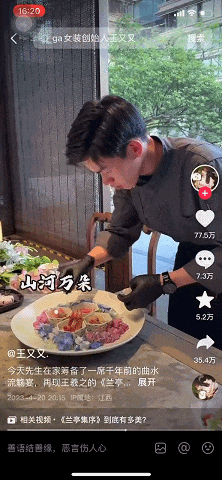 甚至去了和百万粉丝王又又家,创新做了“曲水流觞宴”。