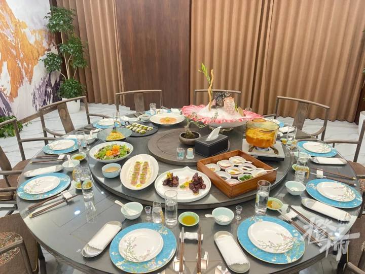 丁尧接到过比较“壕”的一单,是萧山一位老板在家办公司开业庆典,一桌10000元的餐标,人均1000元,澳龙、帝王蟹、象拔蚌、四头鲍鱼、东星斑、燕窝……