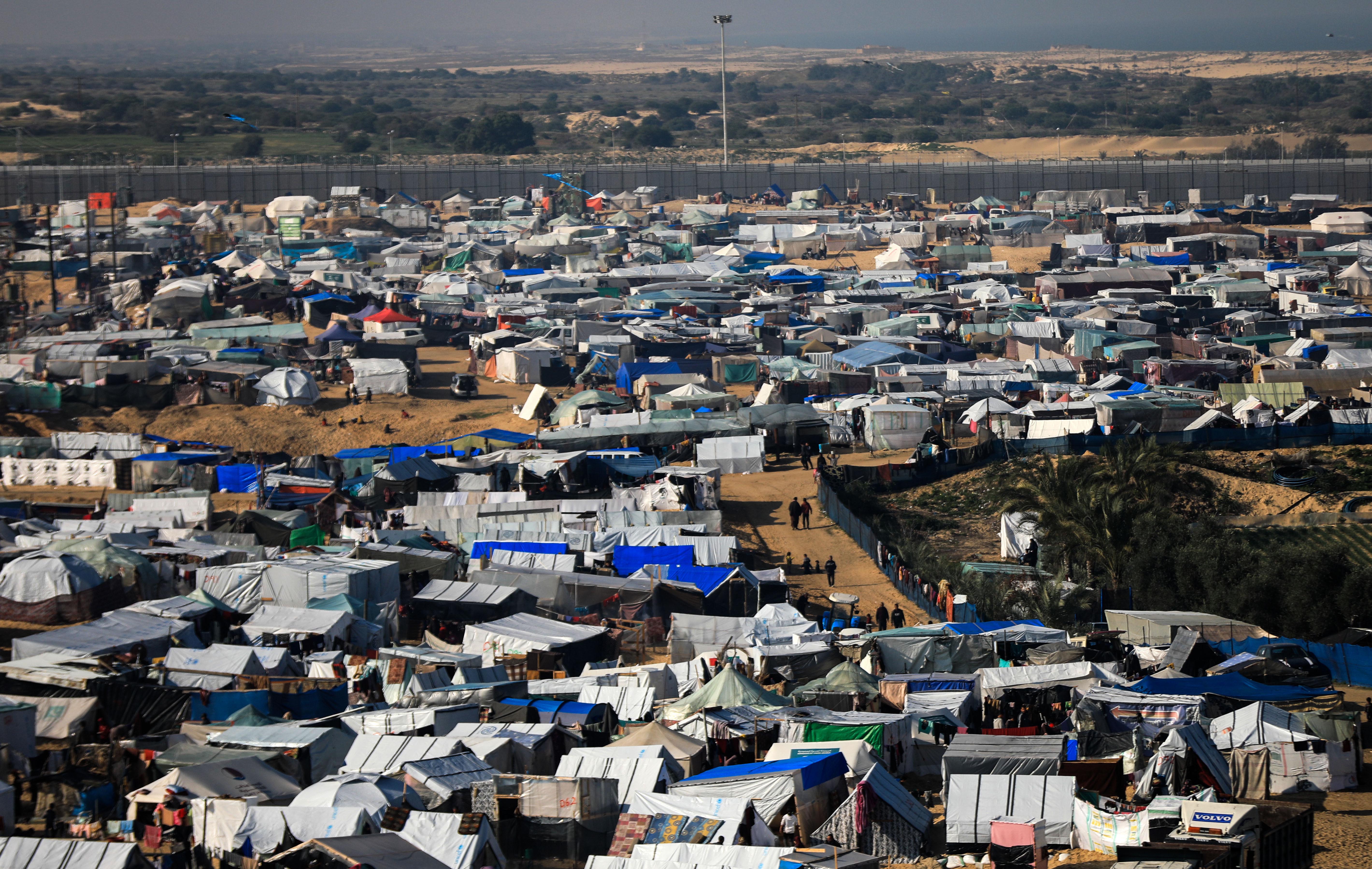 这是2月10日在加沙地带南部城市拉法拍摄的一处临时营地。新华社发(亚西尔·库迪摄)