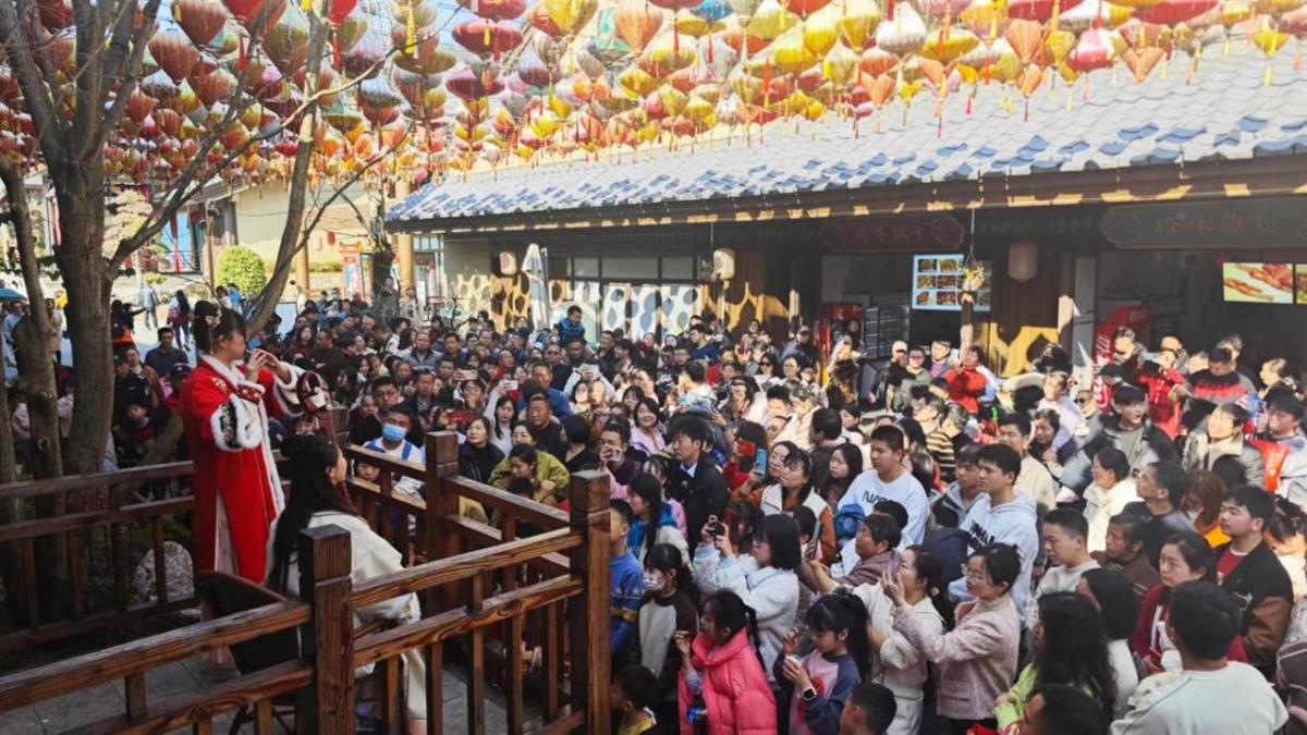 武汉杂技团演出新春杂技专场,为市民及游客表演《飞轮炫技》《绸吊》等精品杂技节目,襄阳古隆中景区开展“诗话百戏台·以诗会友”活动,《隆中对》《三顾茅庐》《大话三国》等演艺节目轮番上演,呈现精彩缤纷的三国世界,丰富游客假日文化体验。