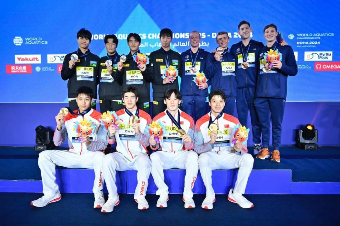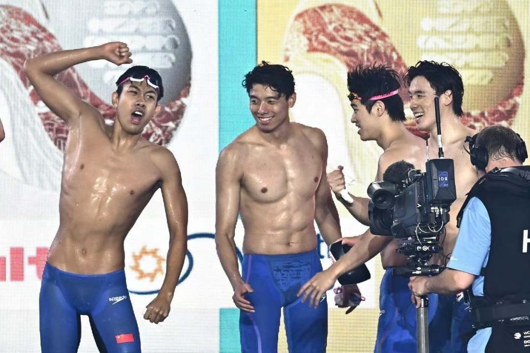 在男子4×200米自由泳接力决赛中,由季新杰、王浩宇、潘展乐和张展硕组成的中国队以7分01秒84的成绩夺得冠军!韩国队和美国队分获银牌和铜牌。这是中国队4名选手在本届世锦赛继男子4×100米自由泳接力夺冠之后,携手再次摘得接力项目金牌。