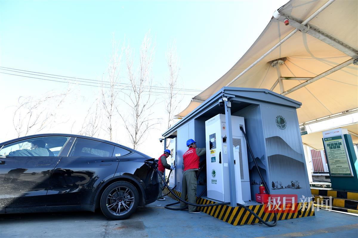 “我开着车来到高速服务区充电站,发现充电站都满了,着急着呢,就看到它朝着我过来了。”余先生笑着说,他停下车没多久,就看到工作人员开着充电机器人来到自己的车旁,主动为车充上了电:“这个服务还挺好的,为我们春节出行提供了便利。”
