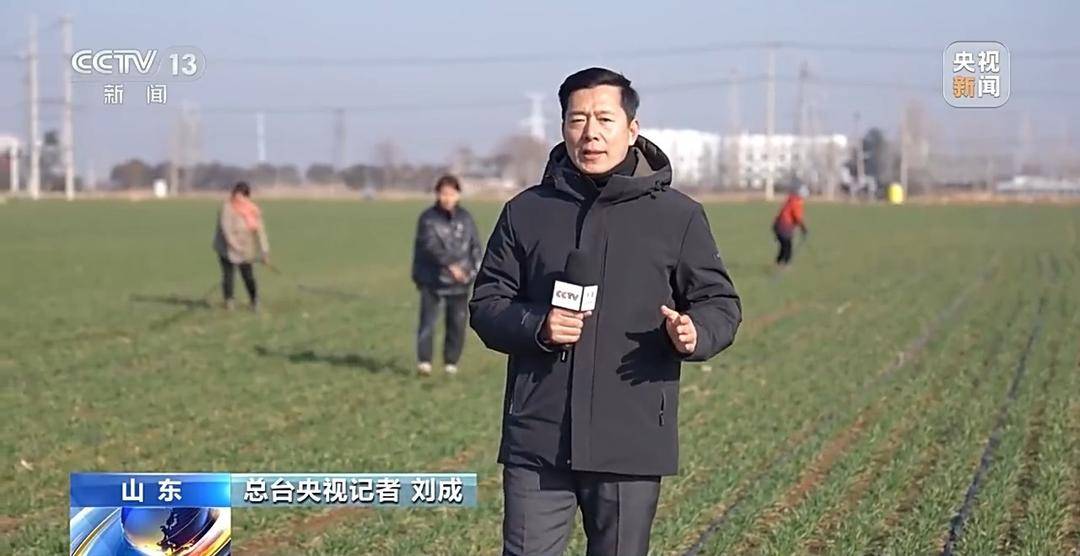 总台央视记者 刘成:我现在是在山东省滕州市西岗镇的一处高标准农田,在我身后,农户们正在铺设滴灌管带,在这些管带上,相隔25厘米就有一个米粒大小的孔洞,水和肥料就是通过这些细小的孔洞,均匀地渗透到了小麦根部。