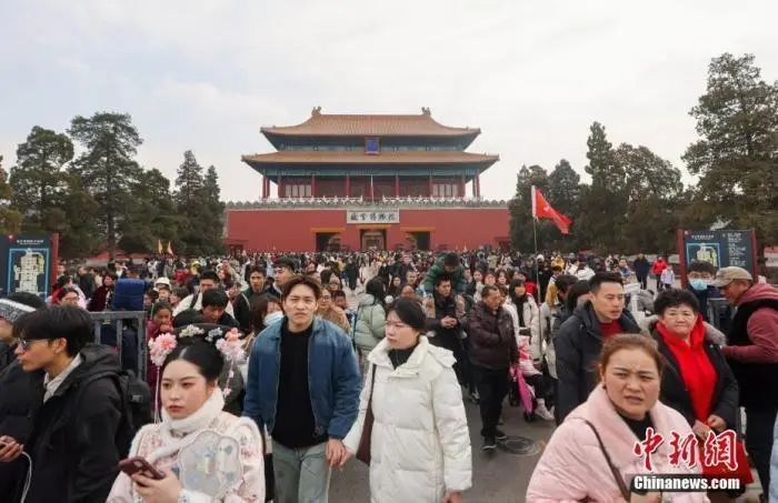 2月17日,游客走出北京故宫博物院。春节假期,北京旅游市场呈现火爆态势。中新社记者 贾天勇 摄