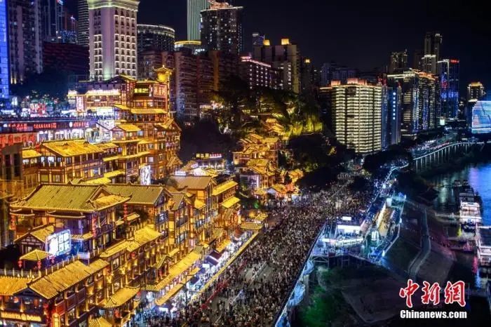 2月16日晚,重庆洪崖洞游人如织。中新社记者 何蓬磊 摄
