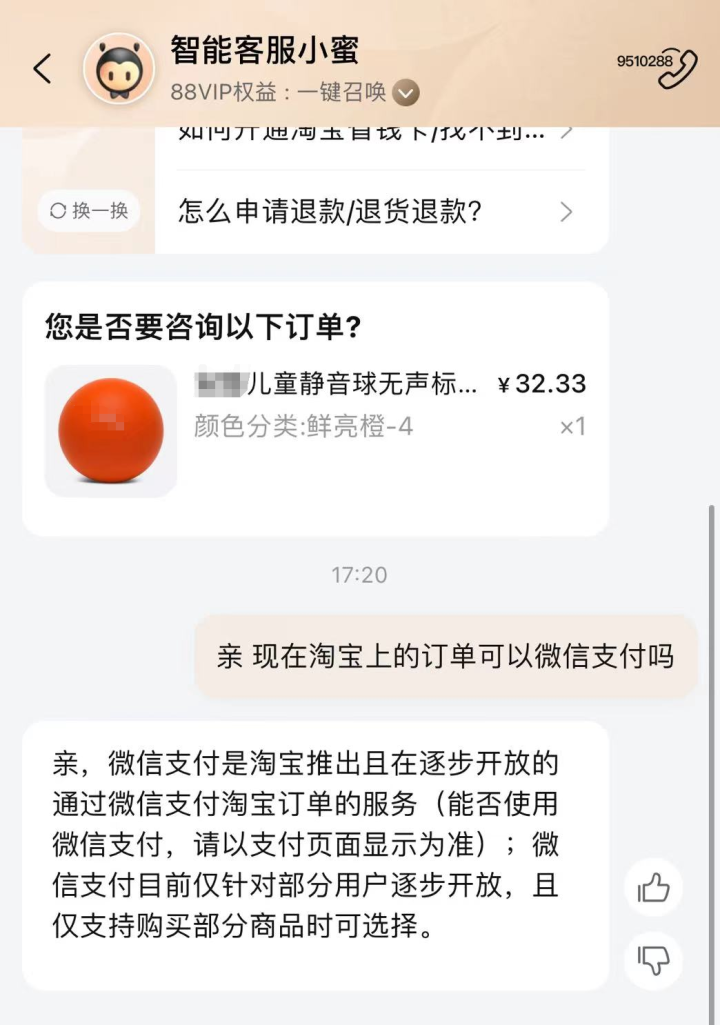 对此,潮新闻记者也询问淘宝官方客服,对方表示,“微信支付是淘宝推出且在逐步开放的通过微信支付淘宝订单的服务(能否使用微信支付,请以支付页面显示为准)。”客服还提到,微信支付目前仅针对部分用户逐步开放,且仅支持购买部分商品时可选择。