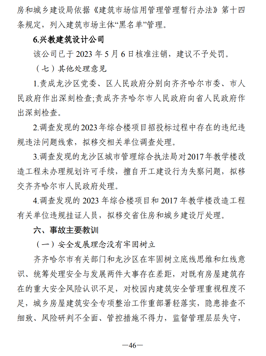 3.李国君,男,2017 年教学楼改造工程施工单位教育建筑公司法定代表人,未履行企业主要责任人安全生产管理职责,对事故负有责任。