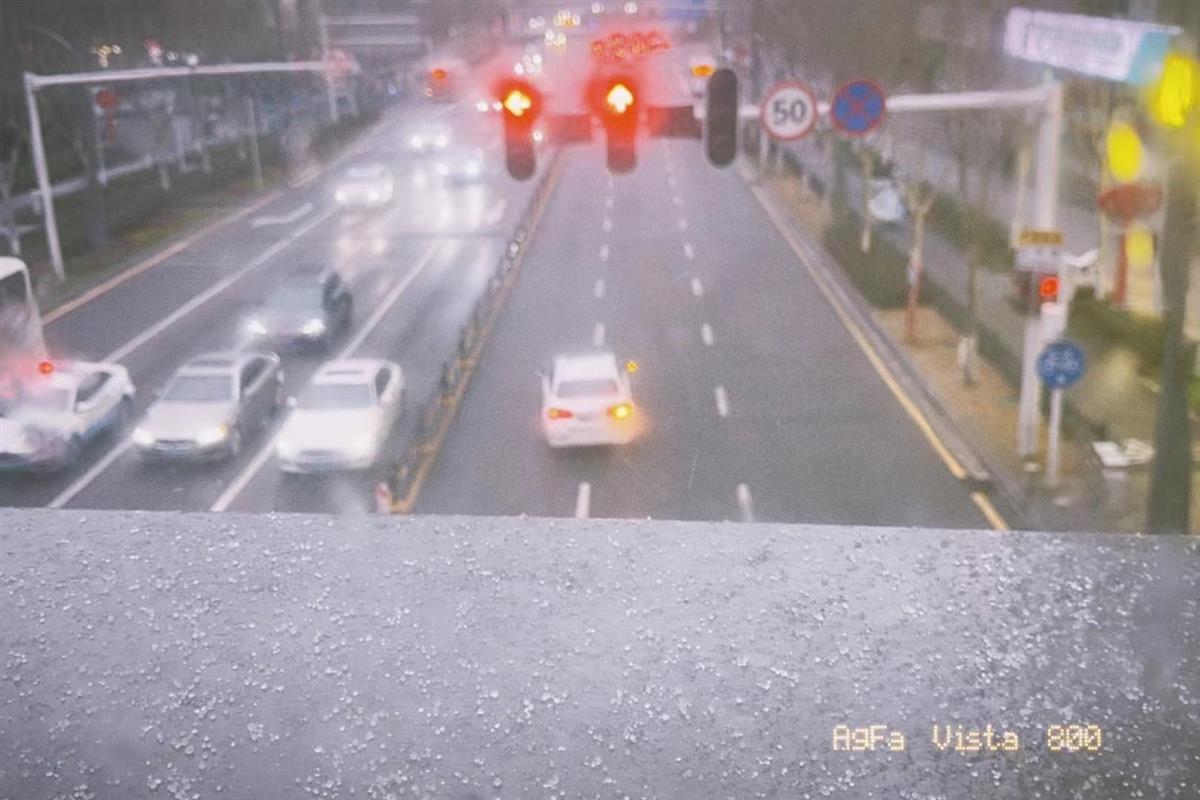 街上走路或骑电动车的朋友们,也都戴上厚厚帽子,裹得严严实实,抵御寒流。晚间7时许,周女士开车路过珞狮路高架时,哗啦啦,突然一大波冰粒撒在前挡风玻璃上,“看样子,要下雪了!”