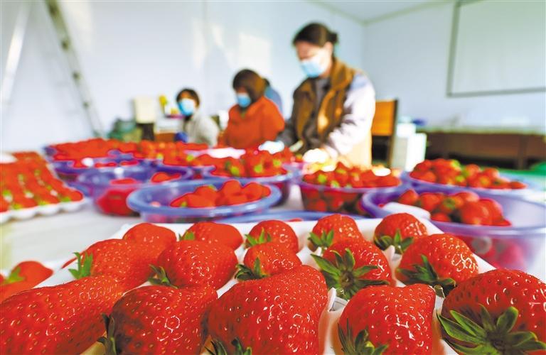 绛县大交镇合作社社员在包装草莓。该县大力实施“特”“优”战略,着力发展樱桃、草莓、中药材等特色产业,助农增收。