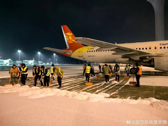 #出行提示#受天气影响,天河机场双跑道目前不适航,预计关闭至08:00。今日凌晨04:00启动机场飞行区道面除冰雪应急预案一级响应,各保障单位正加紧开展除冰雪工作。提醒广大旅客密切关注天气及航班情况变化,合理安排出行时间。