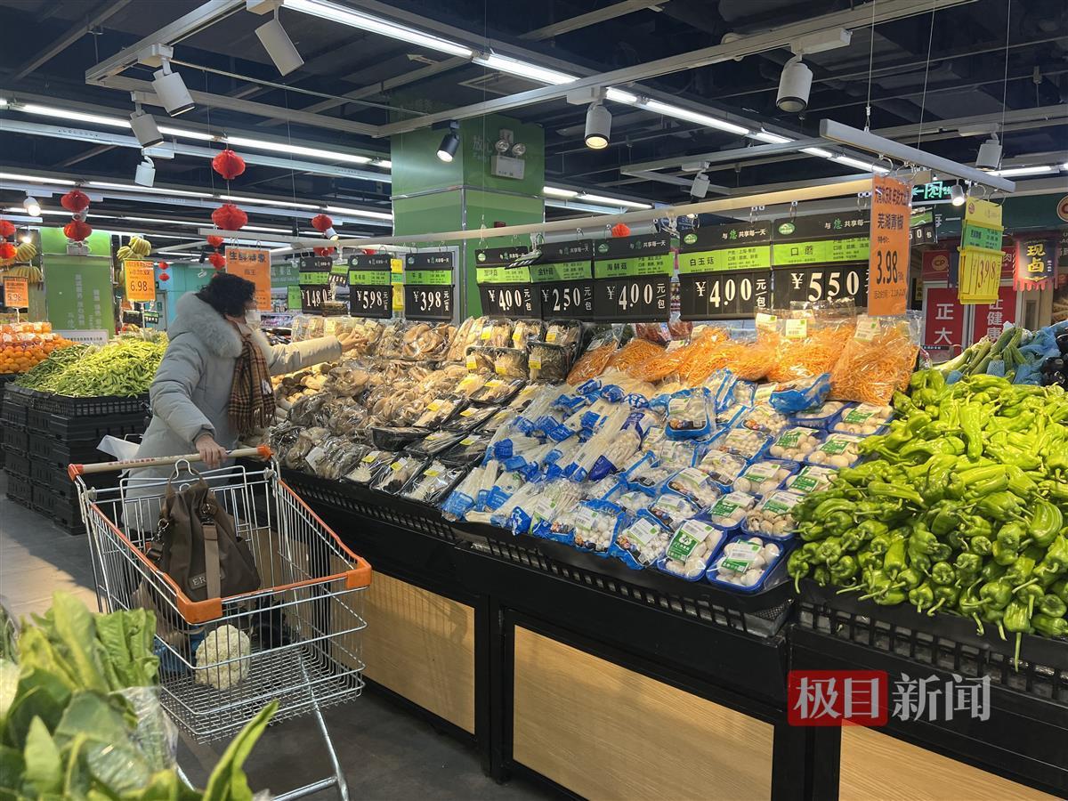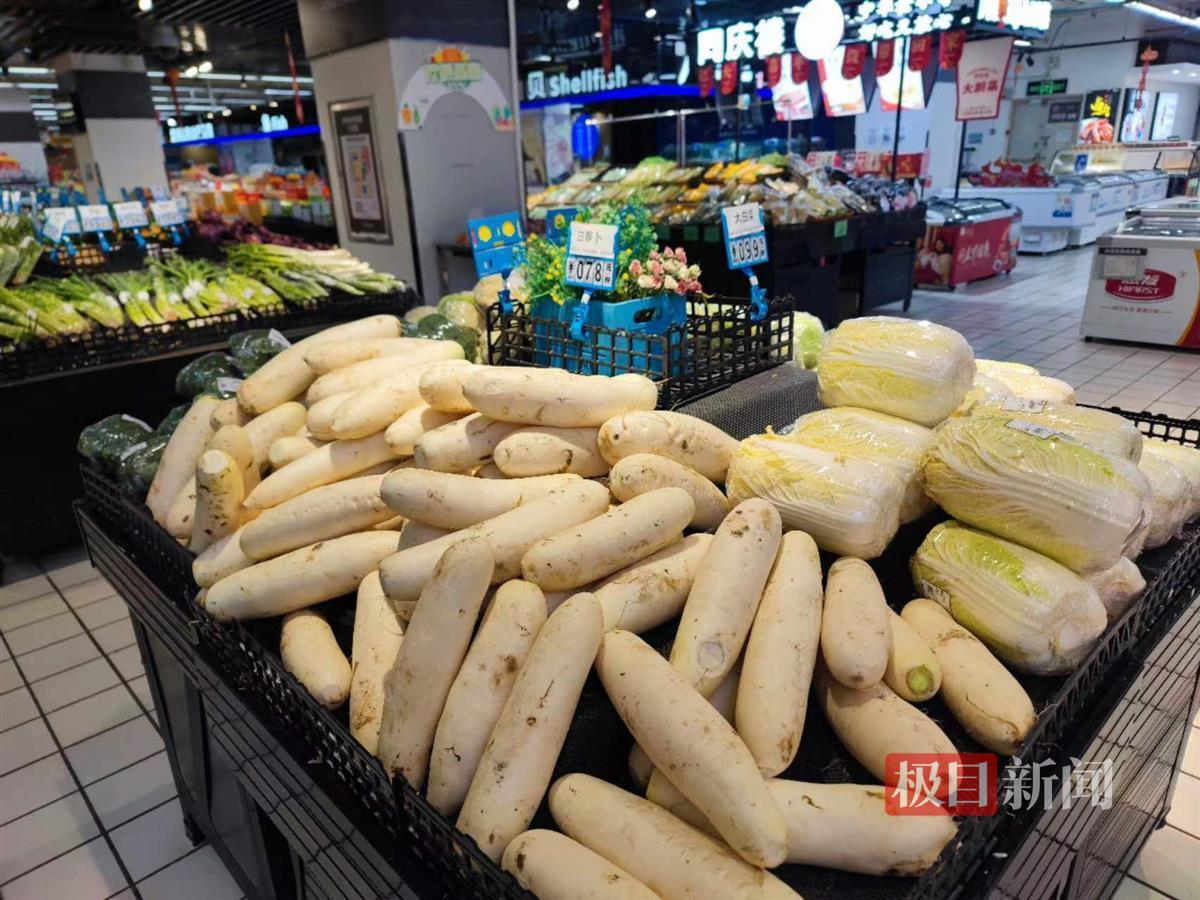 农产品批发市场稳定运转,蔬菜零售端的情况又是怎样的?在中百仓储唐家墩店内,记者看到蔬菜专区的农产品种类丰富,价格平稳,还有不少“1元菜”在售。其中,球包菜、大白菜、白萝卜、菜薹、莴苣价格分别为1.38元/斤、1.2元/斤、1.2元/斤、3.98元/斤、2.38元/斤。