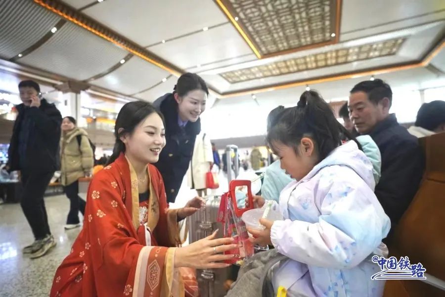 兰州局集团公司兰州西站在候车厅内举办“龙腾飞天迎春来 情暖馨路话团圆”主题活动,车站团员青年与旅客一起猜灯谜、打卡拍照送祝福,还为旅客送上热腾腾的汤圆。昆明局集团公司在部分站车开展“非遗闹元宵”展演活动,将1300多年历史的云南彝族赛装文化搬进车厢和车站。彝族姑娘们身着传统赛装服饰与身着不同年代的铁路制服职工结伴登上“流动T台”,展示灿烂别致的服饰之美,让旅客在旅途中体验不一样的民族文化。