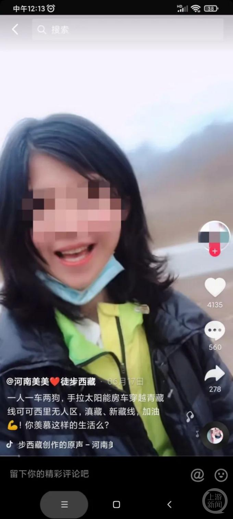 2021年5月1日,22岁来自河南的网红姑娘美美从家乡出发,开始徒步西藏。在账号中,她表示,自己从家乡出发青藏线穿越可可西里无人区,一人一车两狗,手拉太阳能房车,无团队、无后援、无工会,全程吃住在房车里。