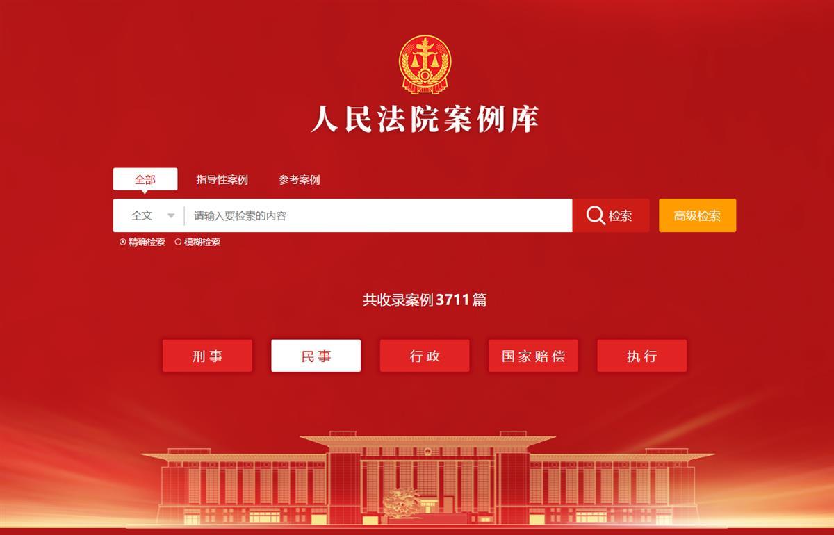 人民法院案例库,收录经最高人民法院审核认为对类案具有参考示范价值的权威案例,包括指导性案例和参考案例,目前入库案例达到3711件。其中,刑事案例共1453件,占比39.15%;民事案例共1643件,占比44.27%;行政案例共405件,占比10.91%;国家赔偿案例共23件,占比0.62%;执行案例共187件,占比5.04%。