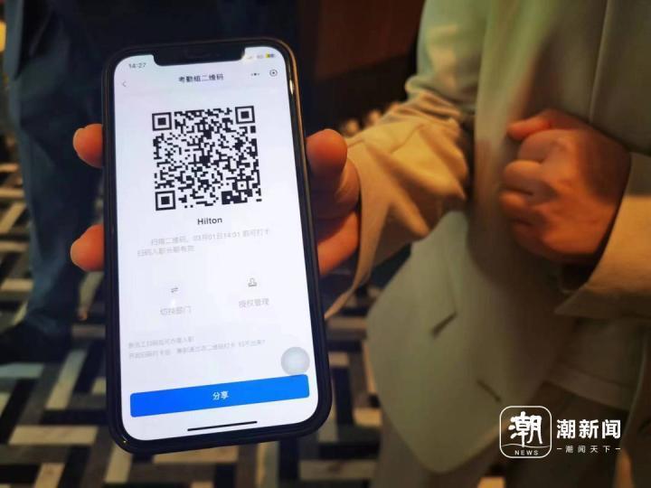 “上岗前先扫一扫二维码。”酒店里的工作人员在记者上岗前给出了指示。一键打卡后,记者的上岗时间就被记录在案,换上带有“小希斜杠”字样的围裙,记者准备上岗了。