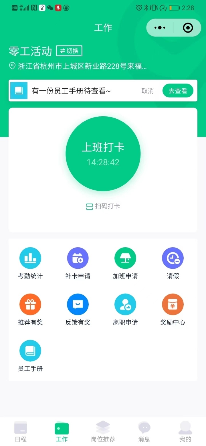 23岁的詹智齐原本在杭州的一家咖啡馆工作,在工作之余,他想给自己再找一份周末兼职,“在社交网站看到了灵工打卡的小程序,发现不用面试就能报名,很方便。”
