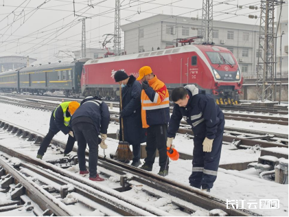 在过去的40天当中,经历了两次恶劣天气的过程,车站高度重视、高度警醒、高度负责,全力做好防范应对各项工作,保障旅客安全出行。 车站针对这一情况,每日加强调度命令核对,完善“一车一案”组织方案,合理安排人员,增开安检通道,保障进出站口力量充足,确保客运组织流线畅通;在降雪前后,利用天窗点分次分批对道岔涂抹防冻液,对配备有道岔融雪装置的车间,根据天气情况,提前开启试验道岔融雪装置;充分发挥“头雁”党团员突击队和“小桔灯”志愿者的先锋模范带头作用,在旅客进出站通道、售票处等重点处所铺设防滑毯,设置安全标识,有序引导旅客进出站,为旅客提供安全的出行环境。